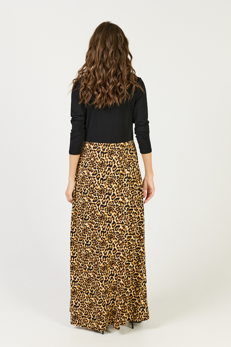 עם דוגמה חלקה למעלה, הדפסים מטריפים למטה וללא גומי במותניים.